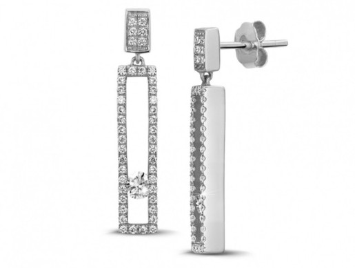 マーキースシェイプのダイヤモンドは、ペアシェイプに似ていますが、2つの尖った先端があります。ダイヤモンドの深さが浅いため、そのカラット重量よりも大きく見えます。この素晴らしいダイヤモンドイヤリングは、オーバルシェイプのメインダイヤモンドをあしらい、それをマーキースカットのダイヤモンドが囲んでいます。